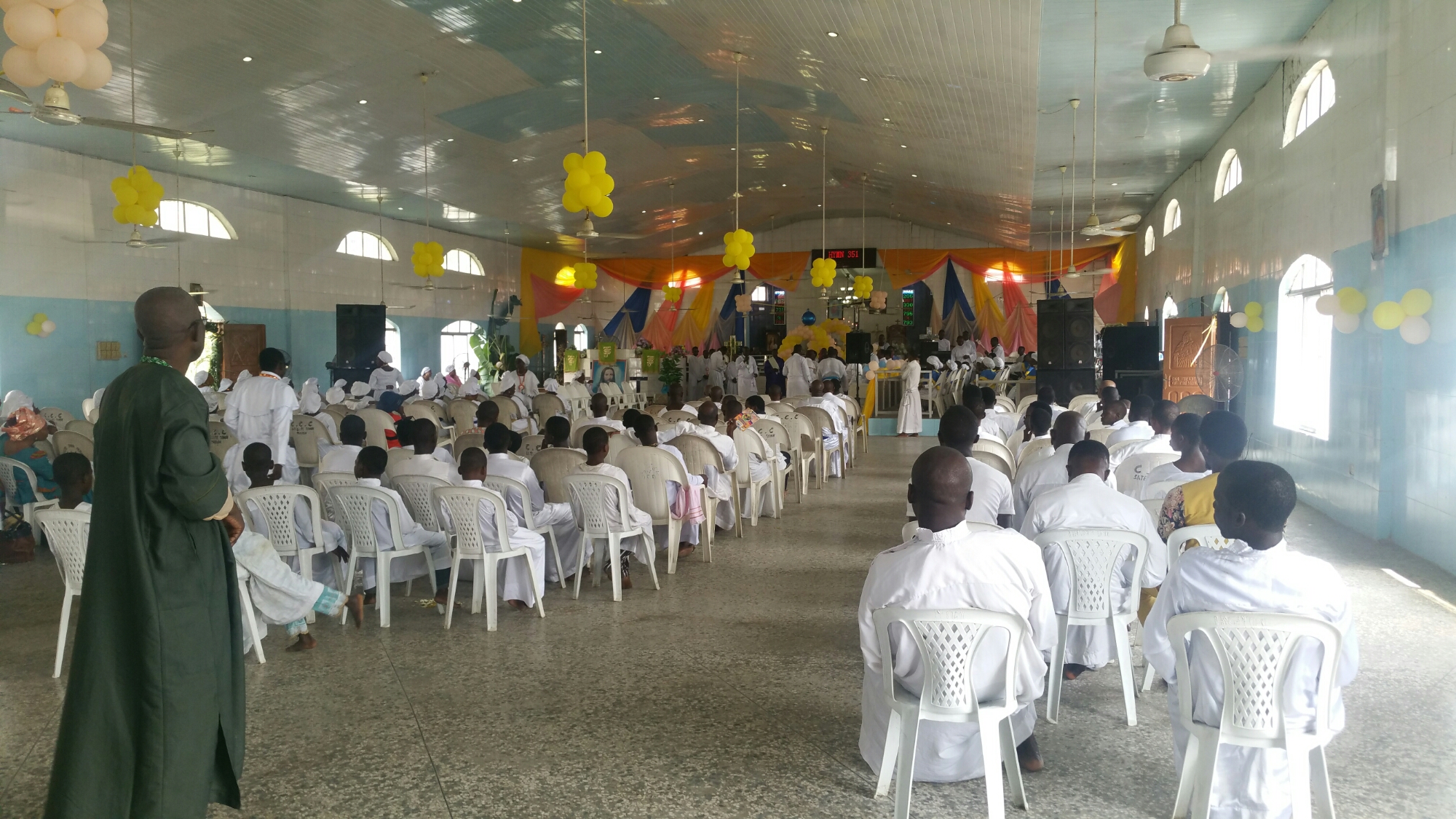 We went to a Christian Church Thanksgiving thing in Satellite Town Cathedral yesterday because Ojo’s brother is part of the church. Having read that in that book, I absolutely hated every second of it. After that we went to see some live music up the road in a place called Golden Groove. It was music from the east, Igbo, and the audience was almost entirely made up of Igbo people. I can see a big difference between Igbo and Yoruba. Physically, Igbo people have very rounded features, especially facially, whereas Yoruba people tend to have more marked features – stronger cheekbones for instance. Igbo people are also a closed shop – two lads sat next to Ojo thinking he was Igbo. 2 hours later after they kept talking Igbo to him and he had to say he wasn’t, they got up and moved. Yoruba people are very inclusive to anybody. Plus the music was so repetitive! The band played for over an hour before the ‘star’ arrived, Sunny Bobo, and it was exactly the same rhythm and tempo the whole time. It didn’t change once! Then when Bobo arrived, and danced and sang amongst the captive Igbo audience, it slowed down and the rhythm changed a touch. But then it was just that rhythm the whole time! I really struggle with musical repetition. I become very bored very quickly. Even little variations keep us alert as an audience. As nice as it was to see some music, I won’t be rushing to any future Igbo music gigs.