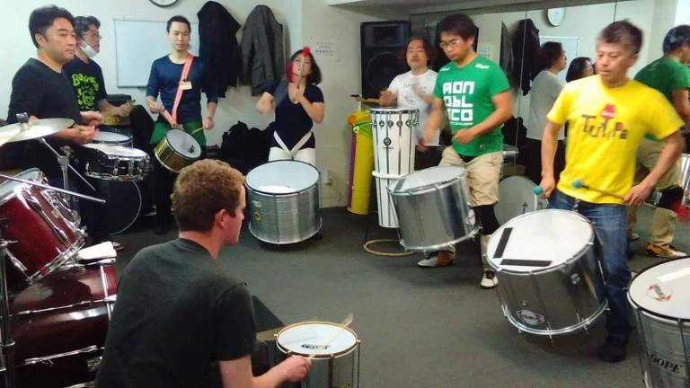 Sunday was the all day samba party, organised by Mayumi and Romi and featuring all the samba bands in Tokyo, (but no samba reggae) as well as some dance troupes and a Spanish gypsy band. It was fantastic and such a good event. I don’t go particularly giddy for samba – every band tends to play the same tempo and breaks and it’s all top end – but that’s just my taste. Samba Reggae has such a profound effect on me that a lot of other types of drum music to my ears have something missing. But, every band was brilliant and the Japanese really get it, far more than I do. The drinks were free… but I still managed to navigate my way back to Toko-chan’s house, 3 changes on the metro, which earnt respect points from everyone.